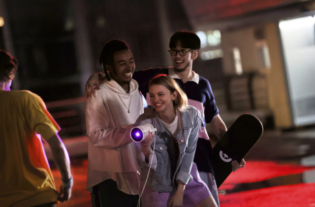 Chcete si len urobiť pokojnú chvíľku pre seba? The Freestyle môže slúžiť aj ako náladové osvetlenie. Stačí na neho nasadiť priesvitnú krytku objektívu a nastaviť farbu, ktorá vám vyhovuje. Túto funkciu však využijete aj počas streamovania hudby, pretože vie analyzovať hudbu a synchronizovať s ňou vizuálne efekty, ktoré môžete premietať na stenu, na podlahu alebo kamkoľvek inam.