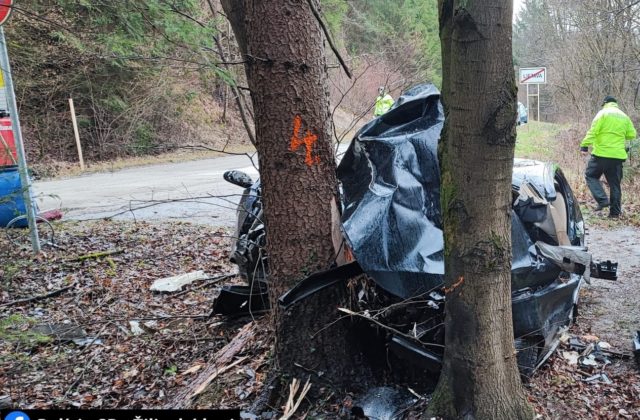 Vodič v zákrute prešiel do protismeru, náraz do stromu neprežil (foto)