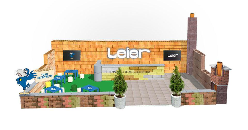 V zaujímavo riešenom stánku sa môžu deti zabaviť napríklad pri mega omaľovávanke, súťažiť o mega stavebnicu a popritom sledovať TV RIK. Dospelákov čaká zase súťaž o návštevu v TV JOJ a možnosť tiež získať skvelú zľavu na kompletný sortiment spoločnosti Leier.