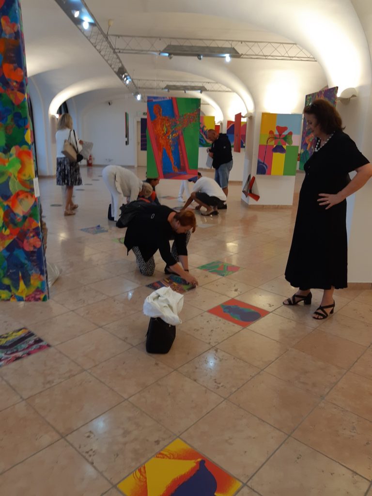 Ukončenie výstavy spravil Daniel originálne. Prekvapil všetkých návštevníkov tým, že im ponúkol z dlažby siene odlepiť si kópie jeho malieb. Pre výtvarníka sa naskytol mimoriadny pohľad, keď takmer všetci padli na kolená a odlepovali si výtvarné obrazce.