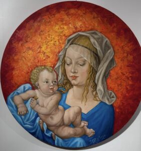 V expozícii prevládala figurálna tématika, väčšinou zameraná na postavu ženy– matky ochrankyne rodiny, držiacej v náručí šťastné dieťa, skláňajúcu sa nad kolískou, obklopenú silnou energiou rodiny alebo biblických pastierov a svätcov. Často sú prítomní anjeli ako strážcovia rodinného pokoja, ale sú tu zastúpené aj duchovnejšie ladené obsahy vychádzajúce z biblických a teologických zdrojov hlbokej kresťanskej spirituality.