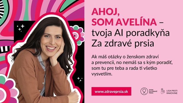 Projekt prináša aj jedinečnú novinku – digitálnu AI poradkyňu Za zdravé prsia, Avelínu, ktorá ženám diskrétne, kedykoľvek a kdekoľvek odpovie na otázky o prevencii, samovyšetrení, mamografii či sonografii.